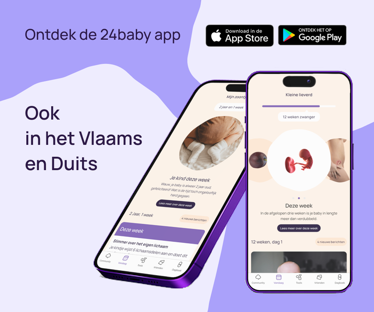 24baby is dé app die met je meegroeit. Van kinderwens tot peuter staan wij voor je klaar. Nu ook met digitale zwangerschapscursussen. Bekijk ze waar je maar wil en stream jezelf klaar voor het ouderschap: van eerste schopjes tot eerste ontmoeting. Tijdens de Negenmaandenbeurs met een speciale beursactie met éxtra korting!