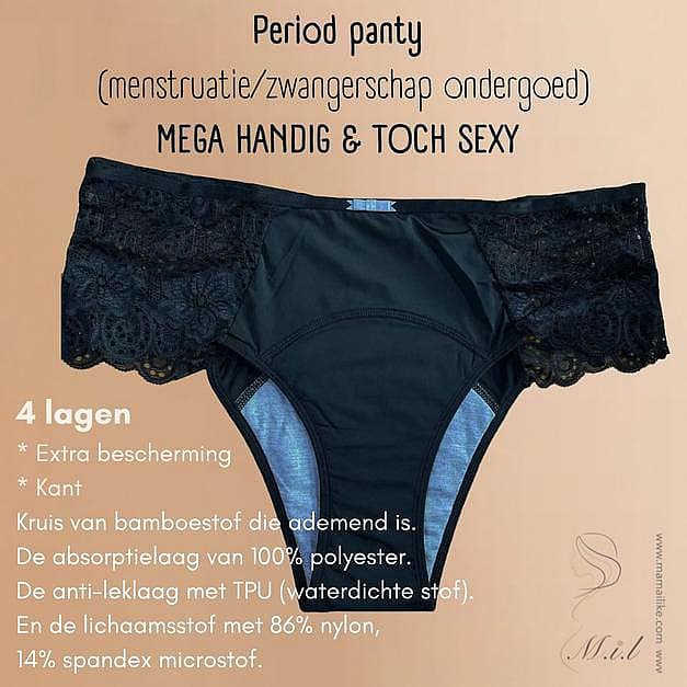 Luxe Kanten Menstruatie- & Zwangerschapsondergoed – Comfortabel, Beschermend & Sexy! ✨🖤 Ervaar ultiem comfort en zekerheid met ons prachtige kanten menstruatie- en zwangerschapsondergoed in tijdloos zwart of nude. Dit ondergoed combineert stijlvolle elegantie met functionele bescherming, zodat jij je zelfverzekerd en sexy voelt – zonder angst om door te lekken. 💖 Waarom jij dit nodig hebt: ✔ Onzichtbare bescherming – Dun en comfortabel, zonder dikke lagen ✔ 4-laagse kruiszone –