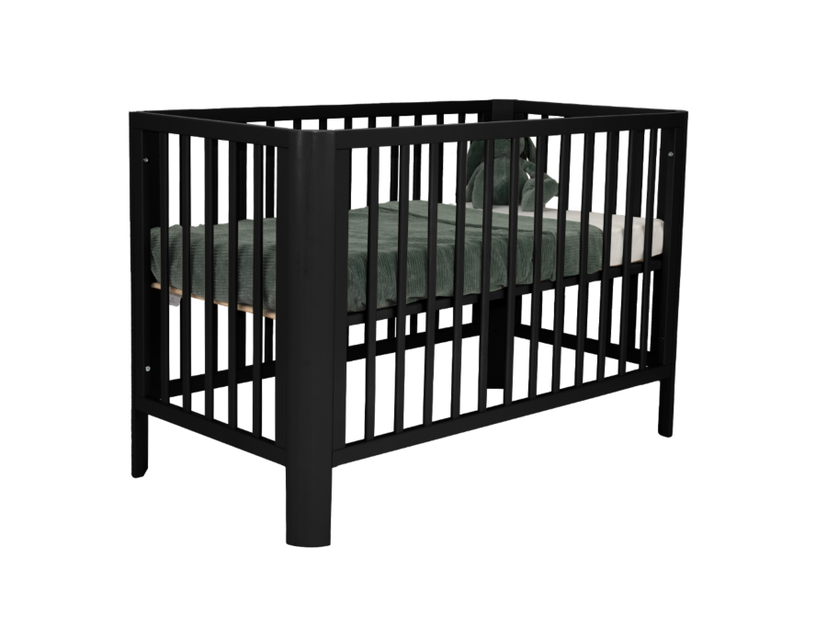 Dit ledikant heeft afgeronde hoeken en een bodem die in drie verschillende hoogtes verstelbaar is. Het is geschikt voor een matras van 60×120 cm.
