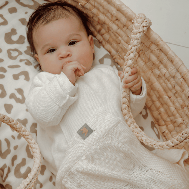 Een zacht duurzaam dekentje gemaakt van organisch bamboe. Heerlijk flexibel en de kleur off white matcht op elke babykamer of in de kinderwagen.